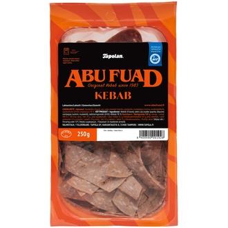 Abu Fuad Kebab 250g sisältää 243 kilokaloria per 100g. Koko 250g pakkaus sisältää yhteensä 608 kcal.