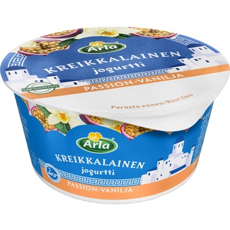 Arla kreikkalainen jogurtti 150g passion-vanilja laktoositon on valmistettu Suomessa.