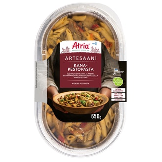 Atria Artesaani kana-pestopasta 650g on valmistettu Suomessa.