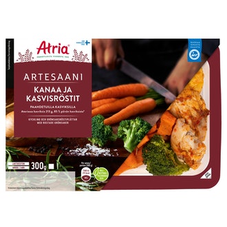 Mitä olet mieltä tuotteesta Atria Artesaani kanaa ja kasvisröstit paahdetuilla kasviksilla 300g? Jaa kokemuksesi ja .
