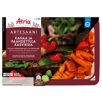 Mitä olet mieltä tuotteesta Atria Artesaani kanaa pinaatti-perunamuusilla ja paahdettuja kasviksia, sekä paprikavoi 300g? Jaa kokemuksesi ja .