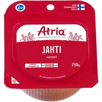 Atria Jahtimakkara on perinteinen sipulimakkara, joka valmistetaan suomalaisesta viljaporsaan lihasta. Jahtimakkarassa on lauantaimakkaraa korkeampi lihapitoisuus ja sipuli tuo siihen lisää makua.