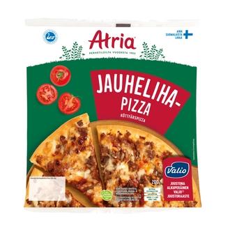 Jauhelihapizza on suosikkipizza, joka maistuu koko perheelle. Atrian jauhelihapizza on valmistettu suomalaisesta lihasta, Valion juustosta, maukkaasta tomaattikastikkeesta ja kuitupitoisesta pohjasta. Jauhelihapizza on lämmitystä vaille valmis. Voit kuumentaa pizzan kätevästi uunissa tai mikroaaltouunissa.Tarpeen mukaan voit tuunata jauhelihapizzaa oman maun mukaan. Kokeile esimerkiksi jalapenoja tai chilikastiketta, kun haluat tulisuutta pizzaan. Erilaisilla juustoilla saa muokattua makumaailmaa myös; lisäämällä kermajuustoa jauhelihapizzasta tulee entistä pehmeämmän tai sinihomejuustolla saa makumaailmaa pikantimmaksi.
