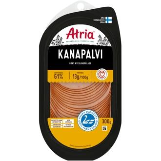 Atria Kanapalvi 300g sisältää 94 kilokaloria per 100g. Koko 300g pakkaus sisältää yhteensä 282 kcal.