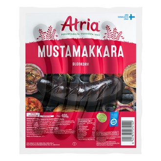 Atria mustamakkara 400g on valmistettu Suomessa.
