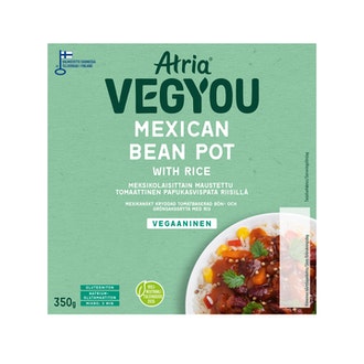 Atria Vegan Mexican Bean Pot 350g on valmistettu Suomessa.