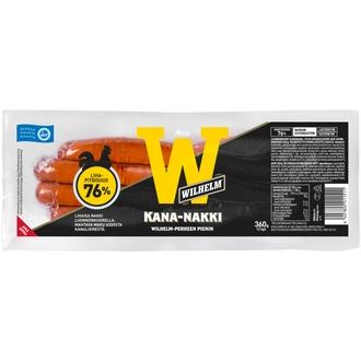 Atria Wilhelm kuorellinen kananakki on lihaisa ja herkullinen nakki, joka sopii mainiosta niin ruoanlaittoon, kuin rentoon syömiseenkin. Nakit ovat valmistettu kotimaisesta kanasta ja niiden lihapitoisuus on 76%. Nakit ovat saaneet makunsa mm. aidosta kanaliemestä ja nakkien ohut kuori takaa napsahtavan lopputuloksen.