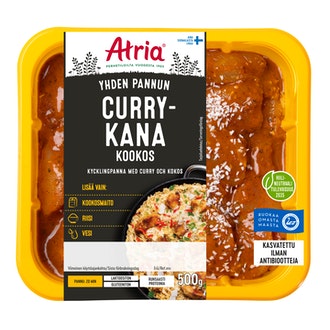 Atria Yhden Pannun Currykana Kookos 500g on valmistettu Suomessa.