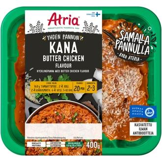 Atria Yhden Pannun Kana Butter Chicken Flavour 400g on valmistettu Suomessa.
