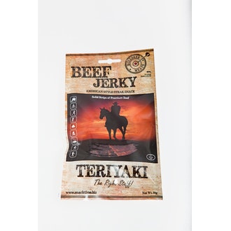 Beef Jerky Teriyaki 50g sisältää 279 kilokaloria per 100g. Koko 50g pakkaus sisältää yhteensä 140 kcal.