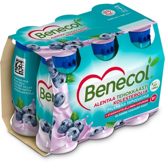 Benecol Mustikka tehojuoma on raikas mustikkasoseella maustettu jogurttijuoma. Tehojuoma kannattaa nauttia aterian tai välipalan yhteydessä. Päiväannoksen kasvistanolia (2 g) saa yhdestä pullosta.