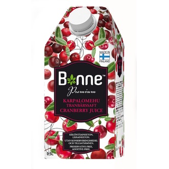 Bonne Premium karpalomehujuoma 0,5l on valmistettu Suomessa.
