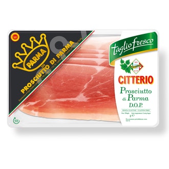 Citterio Prosciutto di Parma 70g sisältää 243 kilokaloria per 100g. Koko 70g pakkaus sisältää yhteensä 170 kcal.