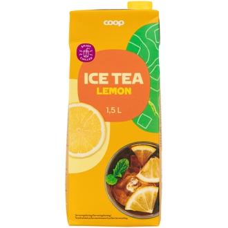 Coop jäätee sitruuna 1,5 l on valmistettu Suomessa.