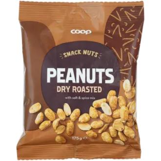 Coop kuivapaahdetut maapähkinät 175 g sisältää seuraavia ainesosia: