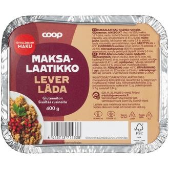 Coop Maksalaatikko Rusinoilla 400g on valmistettu Suomessa.