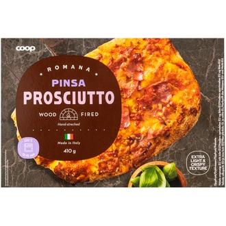 Coop Pinsa Prosciutto 410 g pakaste sisältää seuraavia ainesosia: