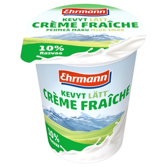 - Créme fraiche 200 g - Nauti kevyestä crème fraîchesta. Sen pehmeä rakenne ja maku sopii erinomaisesti kuumiin ja kylmiin ruokiin. Herkullinen lisä ruokiisi, rasvaa vain 10 %.