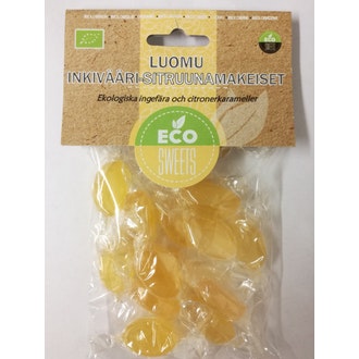 Eco Sweets Luomu Inkivääri-sitruunamakeiset 75g sisältää seuraavia ainesosia:
