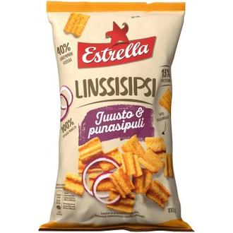 Estrella Linssisipsi 100g Juusto & Punasipuli sisältää seuraavia ainesosia: