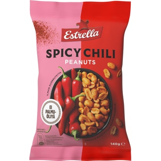 Estrella Spicy Chili Maapähkinät 140g sisältää seuraavia ainesosia: