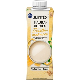 Fazer Aito gluteeniton juustonmakuinen kauravalmiste ruoanlaittoon 2,5 dl on valmistettu Suomessa.