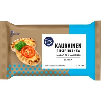 Fazer Kauraisen Riisipiirakan lempeän maun salaisuus on kaurainen kuori (70 % kauraa), joka täytetään samettisen pehmeällä ja maistuvalla riisipuurolla. Kaurainen riisipiirakka on helppo eväs matkalle, kotiin tai juhlapöytään.