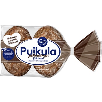 Fazer Puikula Pehmeämpi Jälkiuuni on koko perheelle maistuva jälkiuunileipä. Sen maku on ihanan rukiinen mutta rakenne hieman pehmeämpi kuin perinteisissä jälkiuunileivissä. Se leivotaan Suomessa 100% kotimaisesta täysjyvärukiista runsaskuituiseksi ja lisäaineettomaksi.