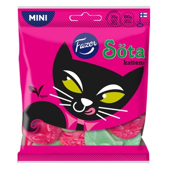 Fazer Söta Katten 70g karkkipussi sisältää seuraavia ainesosia: