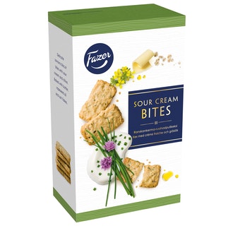 Fazer Sourcream-Chive Bites 160g on valmistettu Suomessa.