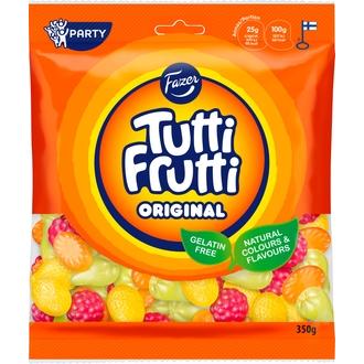 Fazer Tutti Frutti Original karkkipussi 350g on valmistettu Suomessa.