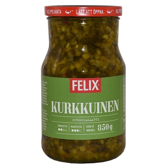 Felix kurkkusalaatti 850g on valmistettu Suomessa.