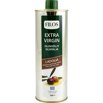 FILOS Ladolia ekstra-neitsytoliiviöljy on korkealuokkainen kreikkalainen oliiviöljy, joka on saatu suoraan oliivien ensimmäisestä kylmäpuristuksesta ainoastaan mekaanisin menetelmin. Kuten viineissä, myös oliiviöljyissä käytetty hedelmä antaa valmiille tuotteelle ominaispiirteensä. Ladolia-lajikkeen öljy on maultaan pehmeä. Peltipurkki on pakkauksena ideaalinen, sillä oliiviöljy säilyy parhaiten valolta suojattuna.