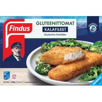 Findus Gluteenittomat kalafileet MSC 340g , pakaste sisältää 199 kilokaloria per 100g. Koko 340g pakkaus sisältää yhteensä 677 kcal.