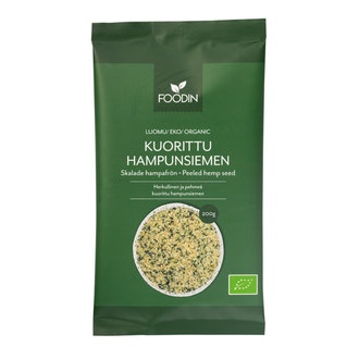 Foodin Kuorittu hampunsiemen 200g luomu sisältää seuraavia ainesosia: