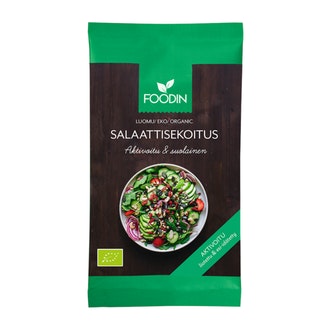 Foodin luomu Salaattisekoitus aktivoitu&suolainen 160g on valmistettu Suomessa.