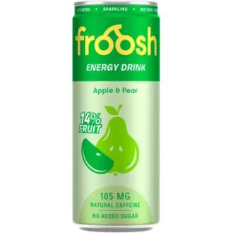 Froosh Energiajuoma Omena & Päärynä 330 ml sisältää 6 kilokaloria per 100ml. Koko 330ml pakkaus sisältää yhteensä 20 kcal.