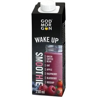 God Morgon Wake Up smoothie vihreä kahvipapu-kaura-vadelma-ruusunmarja-mustikka 250 ml