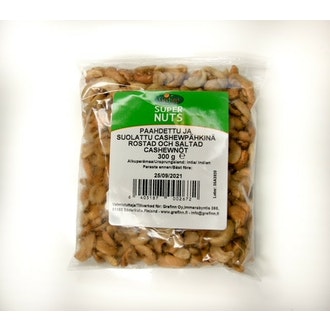 Grefinn Paahdettu ja suolattu Cashewpähkinä 300g sisältää seuraavia ainesosia: