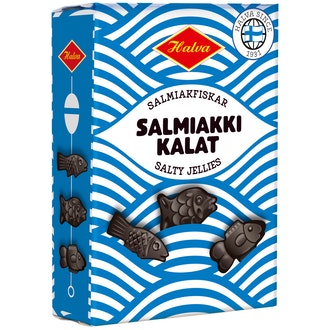 Halva Salmiakkikalat 240g on valmistettu Suomessa.