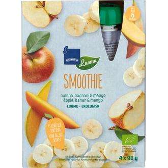 Hedelmäsmoothie Luomu 4X90g Omena-Banaani-Mango