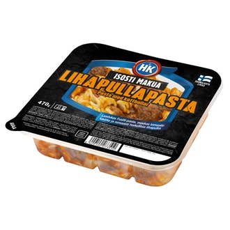 HK lihapullapasta 470g on valmistettu Suomessa.