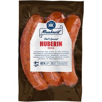 HK Maakarit® Huberin Huilu on nappiosuma laatutietoisille makkaran ystäville. Täyteläisen ja reilun kokoisen artesaanimakkaran resepti on kokkien, Mika Roiton ja Pekka Salmelan käsialaa. Lihaisa grillimakkara on maustettu jalapenolla ja cheddarilla, joka tuo makkaraan sopivasti makua ja mehevyyttä. Mausteisen makkaran lisukkeena toimii raikas coleslaw. HK Maakarit® -artesaanimakkarat valmistetaan Vantaan Pakkalassa perinteisiin kädentaitoihin luottaen, aina suomalaisesta lihasta. Lajittele pakkaus käytön jälkeen muovina.