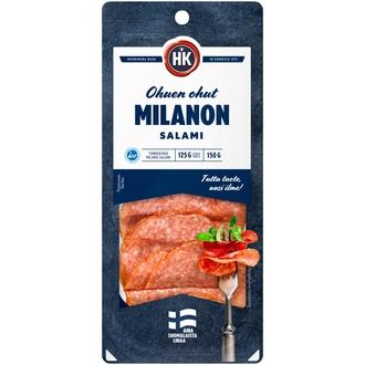 HK Ohuen ohut Milanon salami 150 g on valmistettu Suomessa.