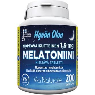 HYVÄN OLON NOPEAVAIKUTTEINEN 1,9 MG MELATONIINI 200 TABL Melatoniinitabletti,ravintolisä.