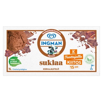 Ingman jäätelö 1l suklaa TK on valmistettu Suomessa.