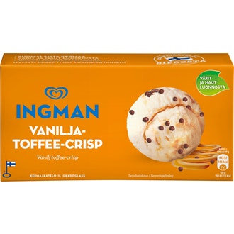 Ingman kermajäätelö 1l toffee-crisp on valmistettu Suomessa.