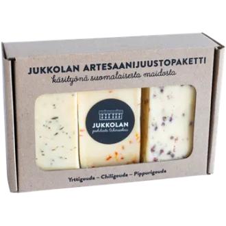 Jukkolan artesaanijuustopaketti 450 g on valmistettu Suomessa.