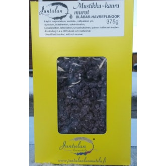 Juntulan mustikka-kauramurot 375g on valmistettu Suomessa.