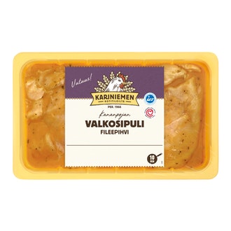 Kariniemen Kananpojan fileepihvi valkosipuli 1 kg on valmistettu Suomessa.